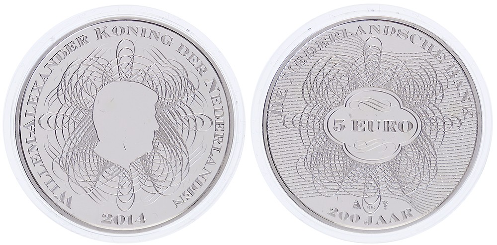 5 Euro 2014 De Nederlandsche Bank 200 jaar, zonder randschrift! Proof.