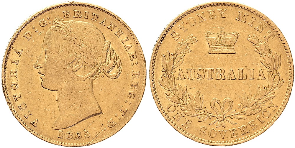 Sovereign 1865. Fr. 10; KM 4. Scratches obverse. VF.