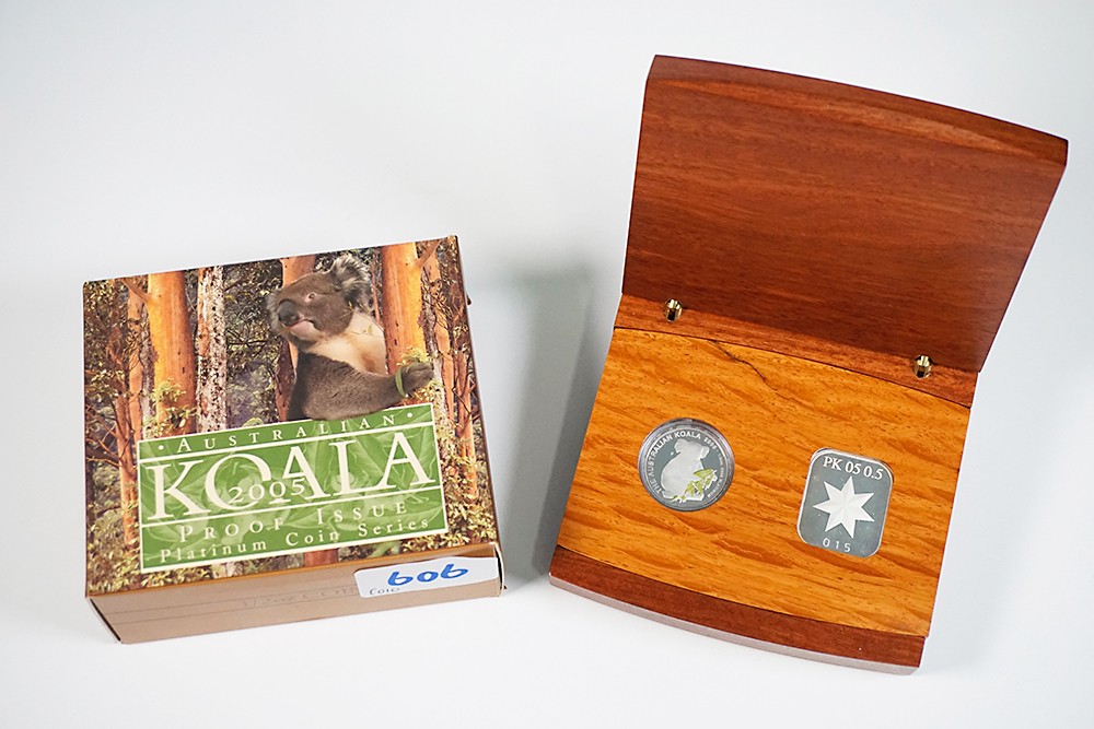 50 Dollars 2005. Single koala with gum leaves. Platinum. KM 937. Proof in original case.