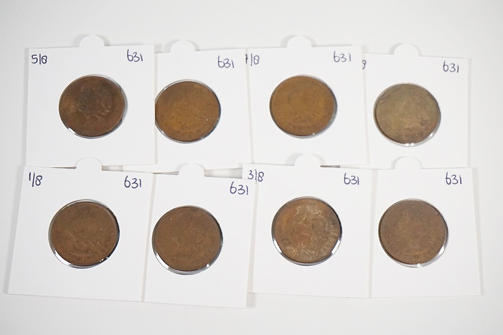 Lot (8) 1 Franc 1943 Rooster. KM 5; Lecompte 14. Abt. EF.