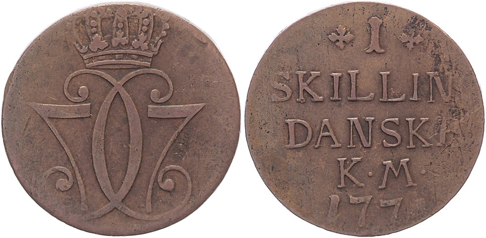 1 Skilling 1771 (Ø 28,3 mm. – weight: 9,82 gr. – DANSKA reverse). VF.