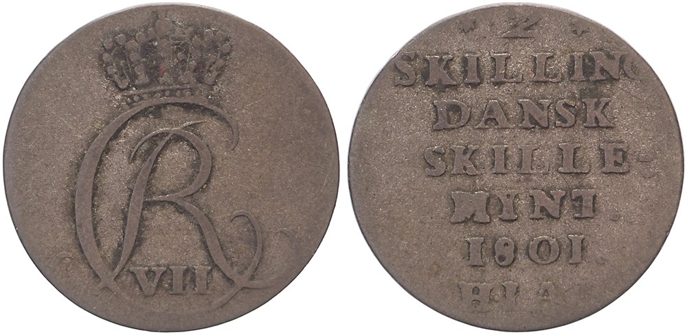 2 Skilling 1801 HIAB. KM 660.1. F / VF.