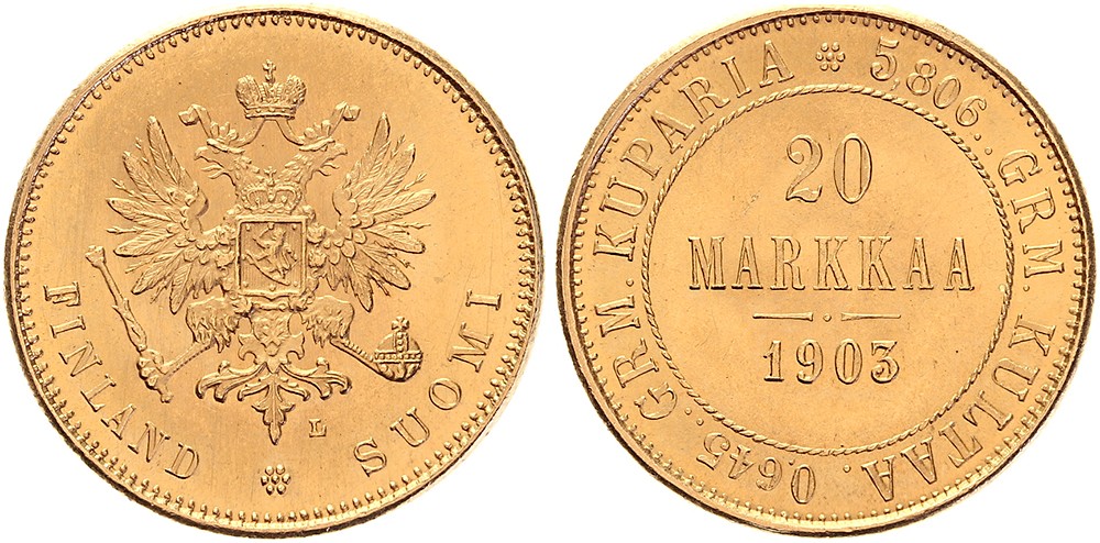 20 Markkaa 1903. Fr. 3; KM 9.2. Unc.