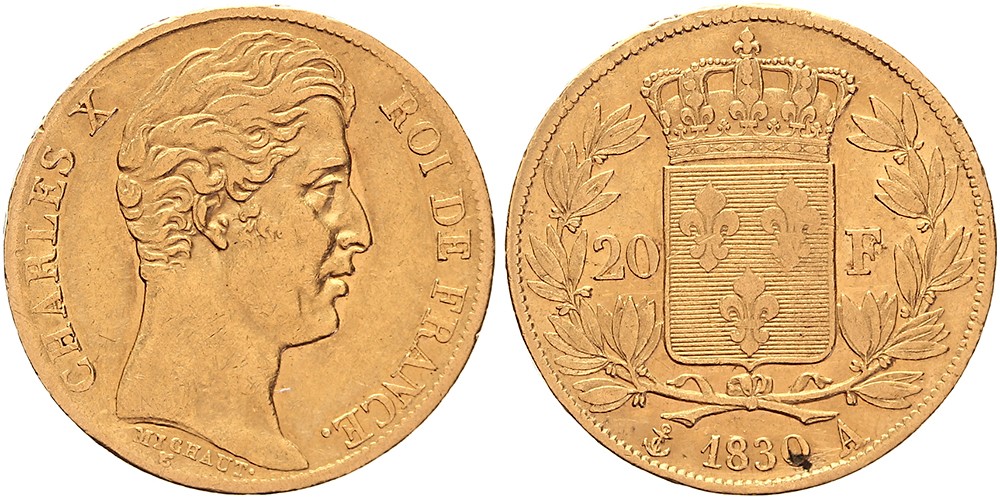 20 Francs 1830A (Paris). Fr. 549; Gad. 1029; KM 726.1. TTB (VF).