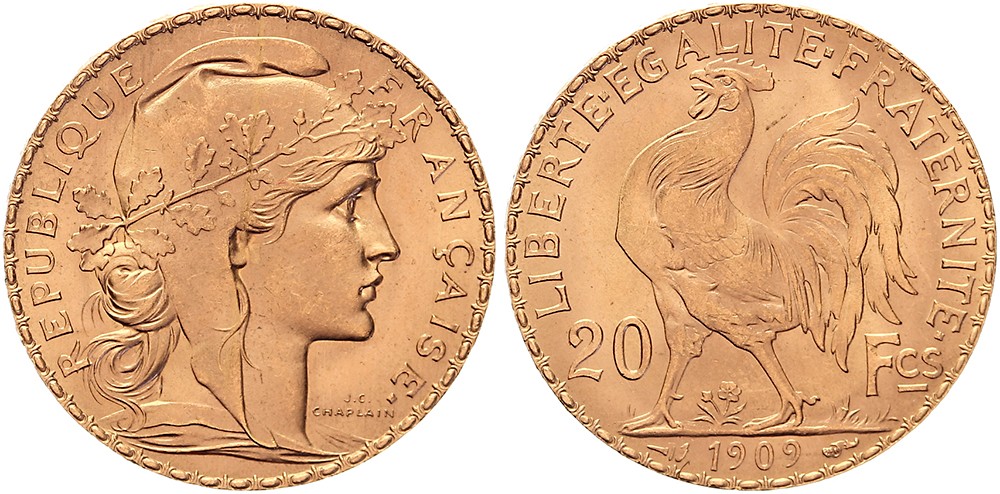 20 Francs 1909 Marianne. Fr. 596a; Gad. 1064a; KM 857. Unc.