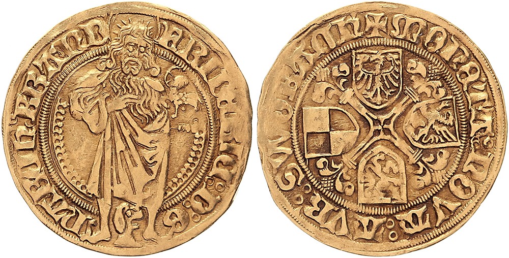 Goldgulden o.J. (1495), Schwabach. Fr. 306; Schulten 193. Prägeschwäche Umschrift. Sehr schön.