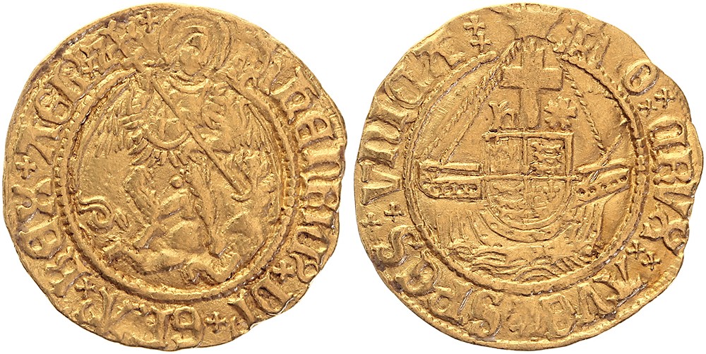 Half angel n.d. (1509-1526), mm. castle with ‘H’. HENRIC only obverse. Fr. 156; S. 2266 [2,50 gr]. VF.