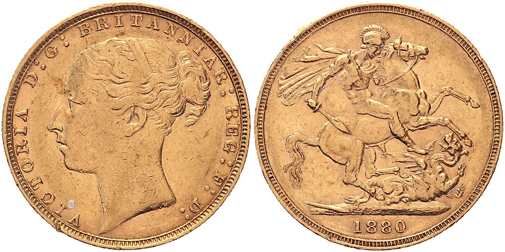 Sovereign 1880. Fr. 388; KM 752. VF.