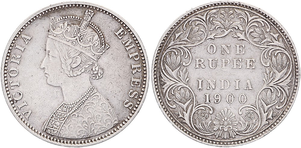 Rupee 1900 B incuse. KM 473.2. EF.