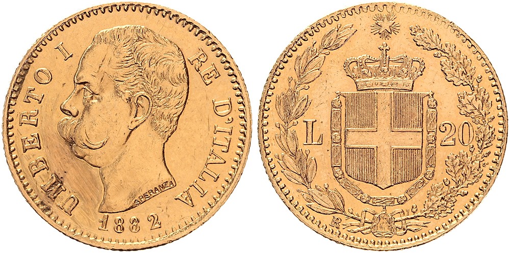 20 Lire 1882. Fr. 21; KM 21. Cleaned. EF.