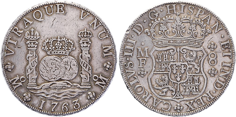 8 Reales 1763 Mo MF. KM 105. Minor edge nick obverse. VF.