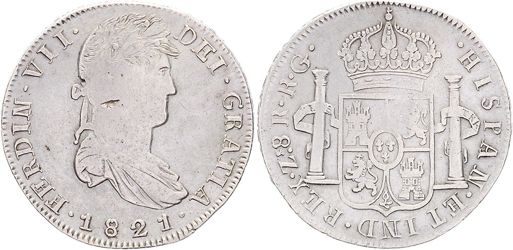 8 Reales 1821 Zacatecas, possible overstrike? Flan irregularity obverse. VF.