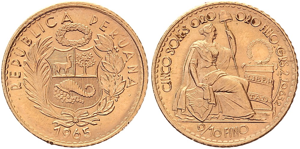 5 Soles 1965 Liberty seated. Fr. 82; KM 235. Unc.