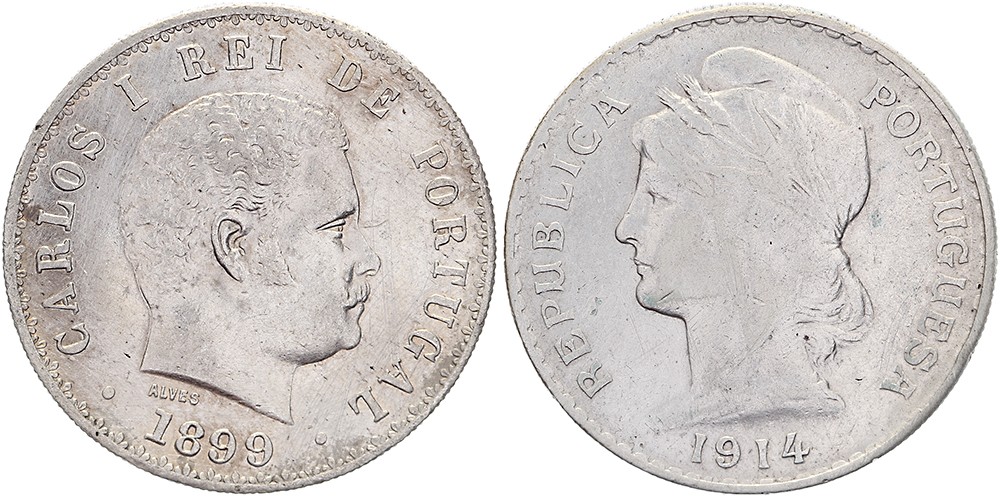 Lot (2) 500 Reis 1899; 50 Centavos 1914 [republic]. KM 535, 561. EF and better.