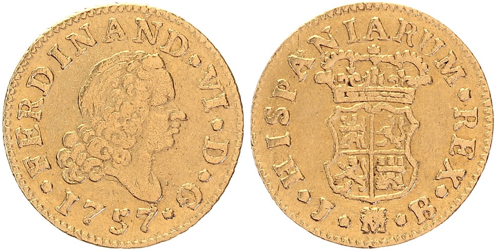 ½ Escudo 1757, Madrid – JB. Fr. 274; KM 378 [1,72 gr]. VF.