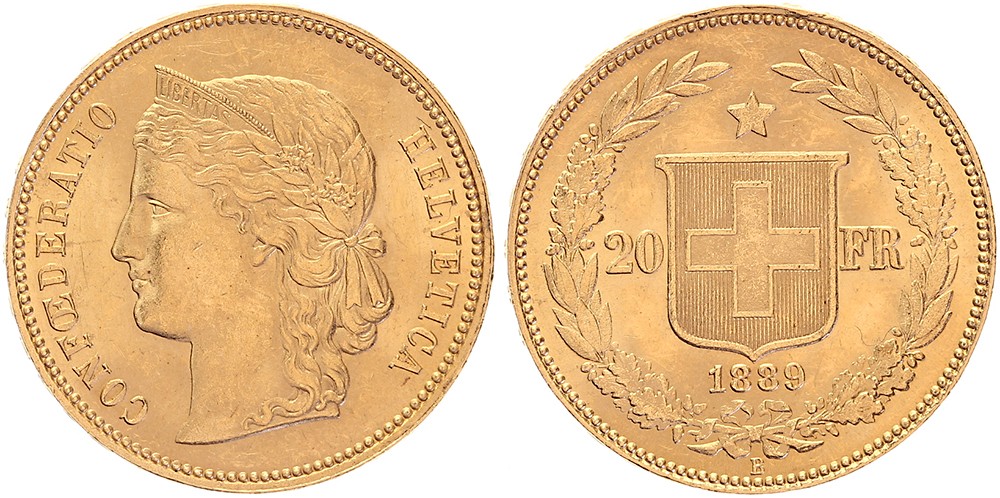 20 Francs 1889 Vreneli. Fr. 495; KM 31.3. Unc.