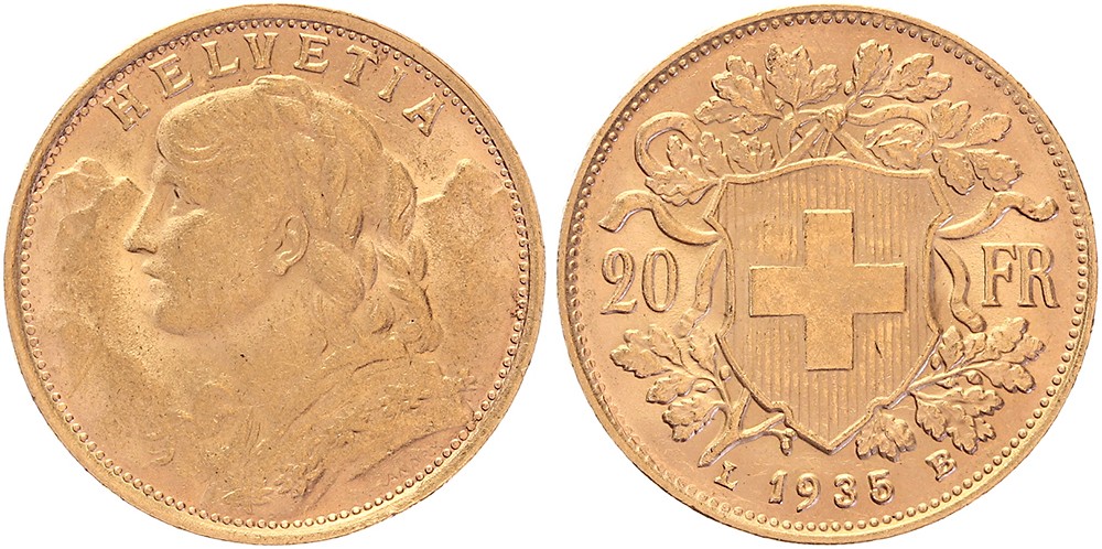 20 Francs 1935 L-B Vreneli. Fr. 499; KM 35.1. Unc.
