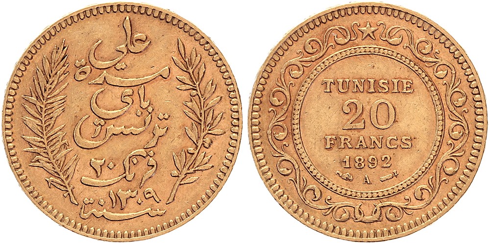 20 Francs 1892 / AH 1309. Fr. 12; KM 227. VF.