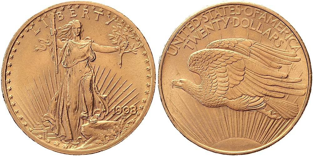 20 Dollars 1908 Saint-Gaudens. Fr. 183; KM 127. EF.