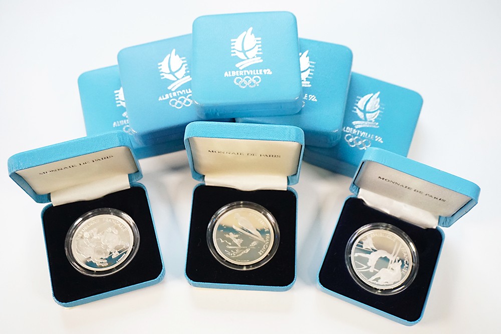 Frankrijk – Olympische Winterspelen 1992 Albertville. 9 x FF 100 in proof. Originele verpakking. KM 971, 972, 980, 982-984, 993-995; Gad./Vesc. 201, 203, 205, 207, 209, 211, 213, 215, 217.