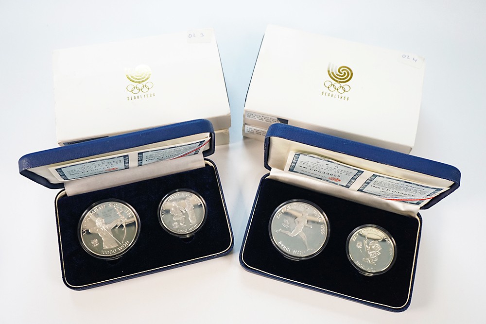 Zuid-Korea: 1988 Olympische Spelen, 6 x 5.000 Won en 6 x 10.000 Won. KM 54-57; 60-63; 66-67; 74-75. Originele cassettes. Proof.