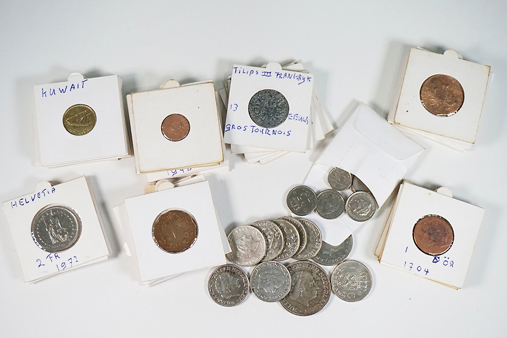 Doosje grondvondsten (64). Zeer divers, maar alles gepoetst. O.a. 3 x Gros Tournois van Frankrijk.