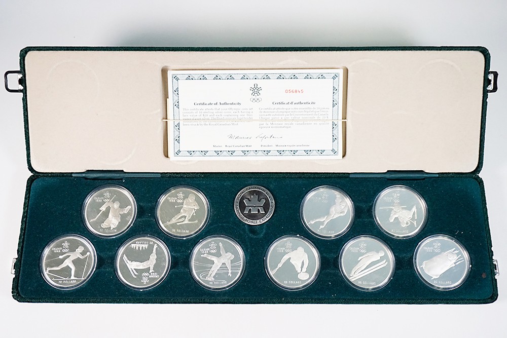 Canada Olympische Winterspelen 1988 Calgary, 10x 20 dollar zilver. In originele groene cassette, 311 gram netto zilver.
