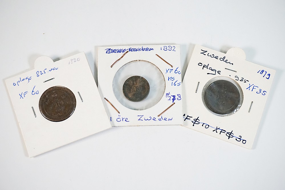 Zweden (3) 1 Öre 1882; 2 Öre 1879, 1880. KM 750, 746. Zeer fraai en beter.