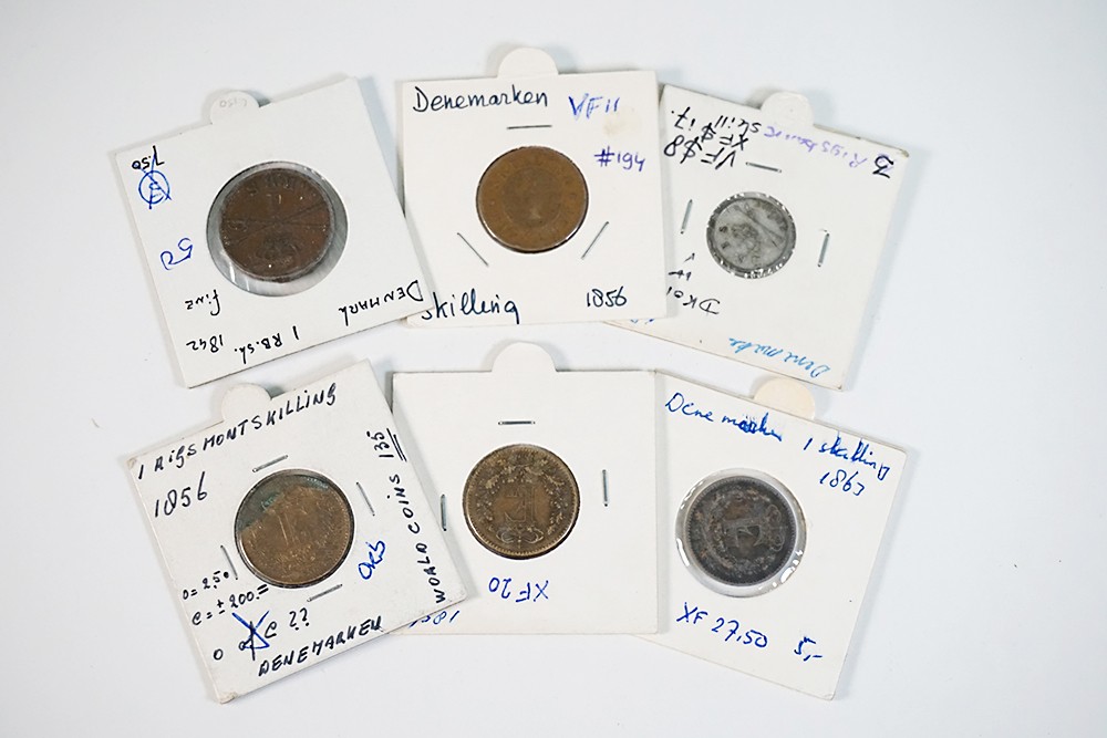 Denemarken (6): Rigsmontskilling 1856 (3), 1863; Rigsbankskilling 1842; 3 RBS 1842.