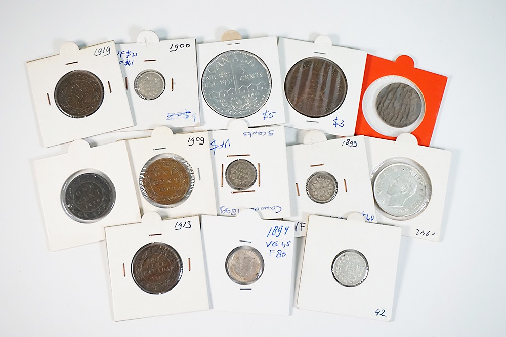 Canada (13) bronzen centen, zilveren munten en divers 19e / 20e eeuw.