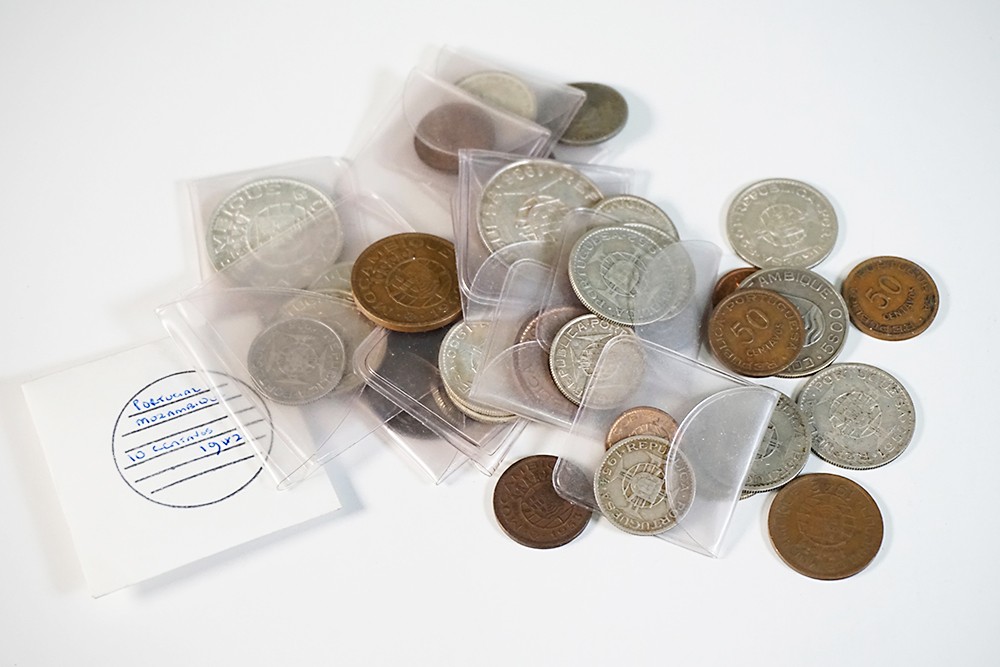 Blikje munten Mozambique onder Portugese overheersing. Ook zilver.