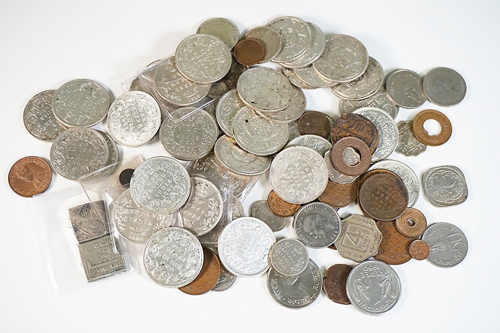 Blikje India, veelal Brits India, w.o. 43 x zilveren rupee van Victoria, Edward VII en George V in hoge kwaliteit.