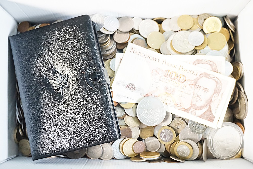 Doos met ruim 7,5 kilo onuitgezocht kilowaar wereld, ook iets zilver.