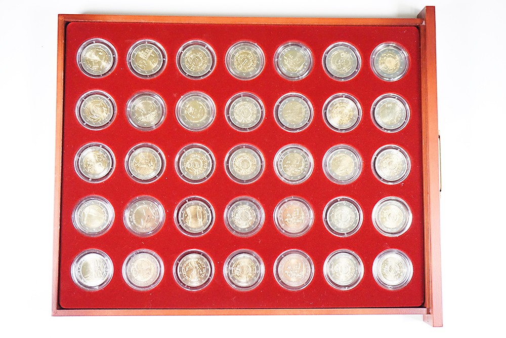 Grote collectie 2-Euro herdenkingsmunten 2002-2015 in acht luxe muntboxen van Leuchtturm (238x). Ook de ‘moeilijke’ stukken. Tevens enige € 0,50 en € 1 van Vatikaan en San Marino. Totaal 242 stuks. Nominale waarde: € 478,50.