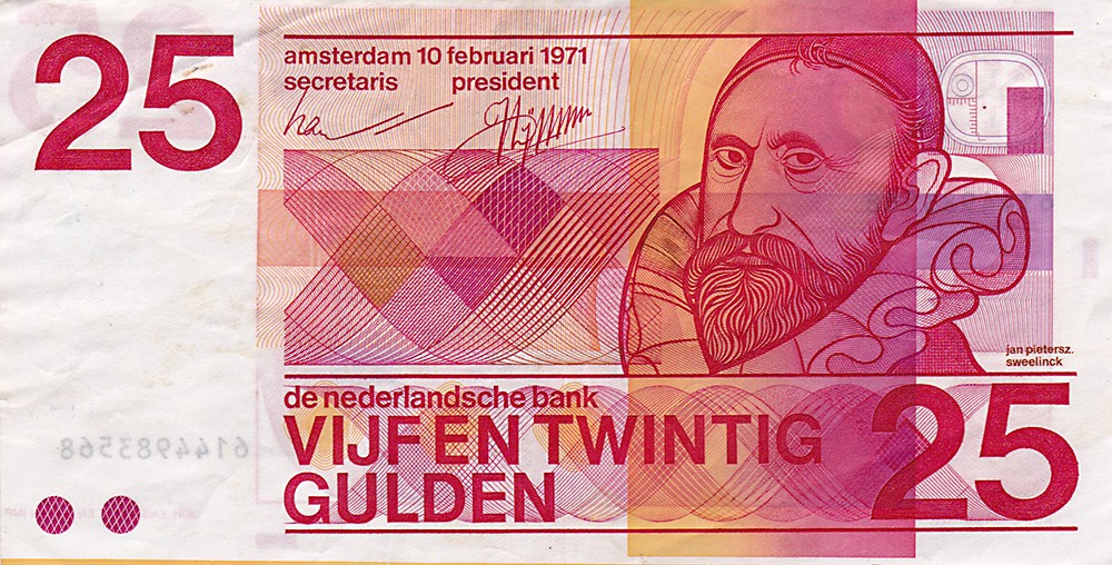 25 Gulden 1971 Sweelinck [# 6144983568]. Iets excentrisch gesneden. Mev. 84-1; AV 56.1b.2. Zeer fraai.