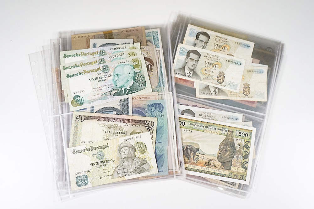 Lindnertableau met meest eenvoudige bankbiljetten van de wereld, ook Spanje en West-Afrika.