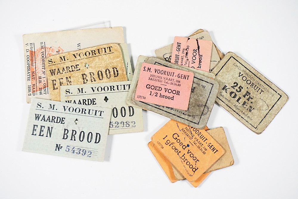 Lot (19) vnl. broodbonnen van S.M. Vooruit—Gent. Aardige curiositeit!