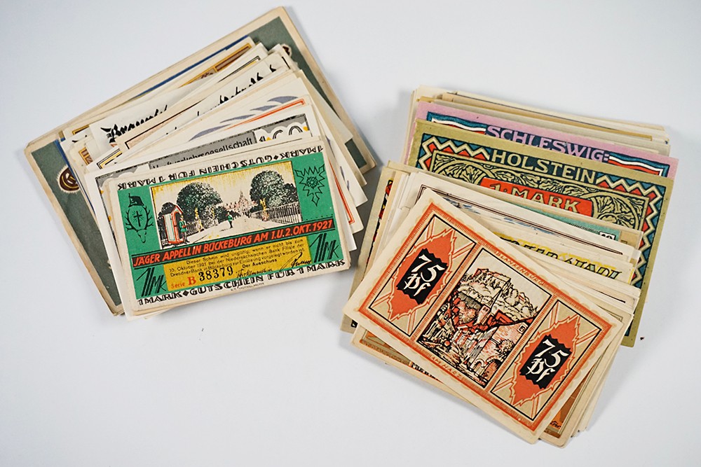 Lot met o.a. 250 stuks stedengeldbiljetten (noodgeld). Vrijwel allen verschillend.