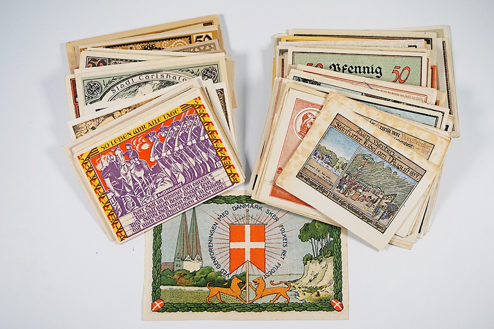 Lot met o.a. 250 stuks stedengeldbiljetten (noodgeld). Vrijwel allen verschillend.