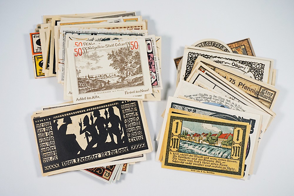 Lot met o.a. 250 stuks stedengeldbiljetten (noodgeld). Vrijwel allen verschillend.