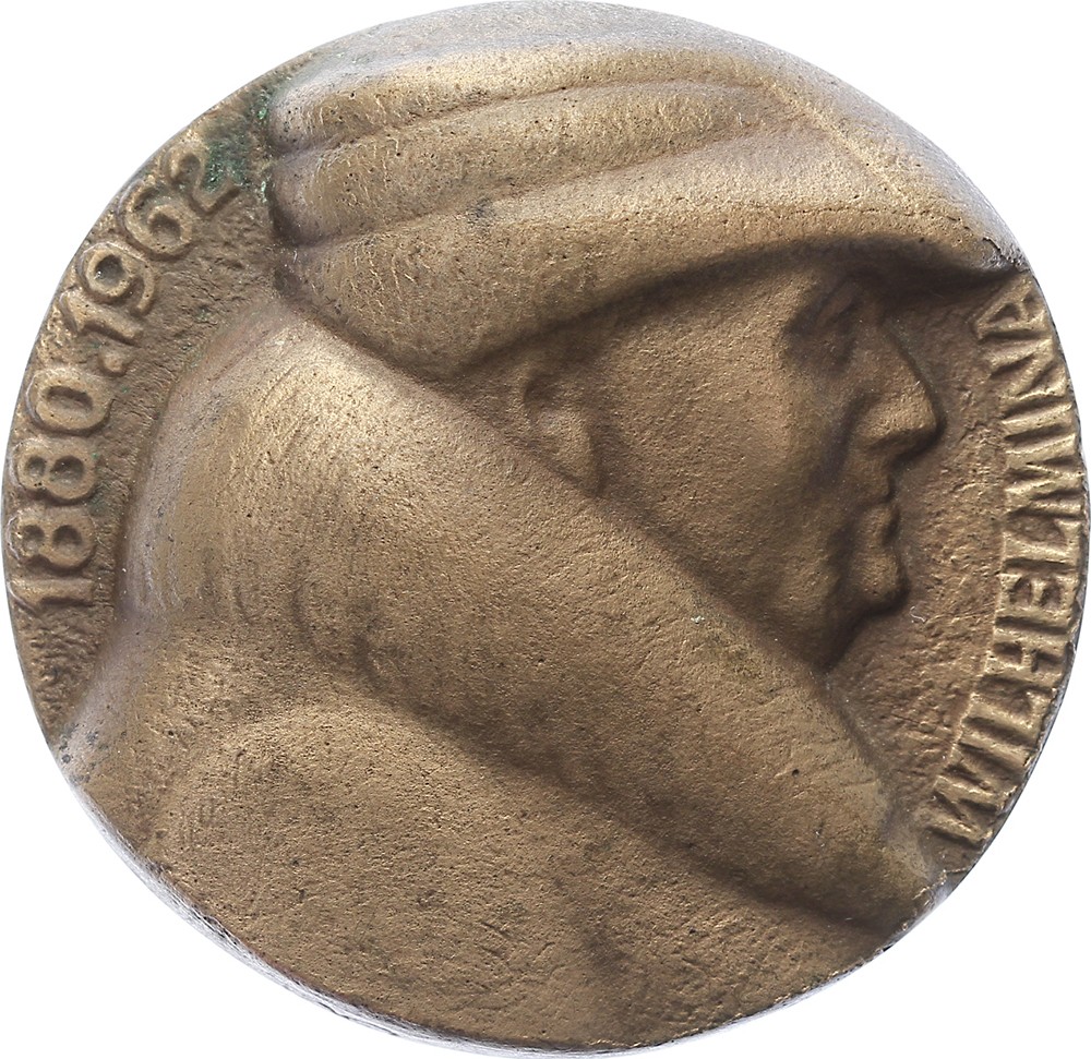 (1968) Ter ere van koningin Wilhelmina. Borstbeeld Wilhelmina in bontmantel en muts naar rechts. / Blanco. Æ gegoten 62. Beeldenaar 1979, pag. 166, nr. 15. Nico Onkenhout. Prachtig.