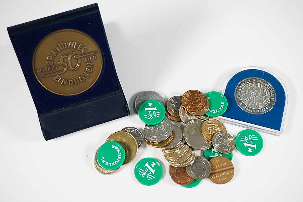 Lot met ruim 35 diverse tokens en penningen, o.a. Brandweer Eindhoven 50 jaar 1941-1991