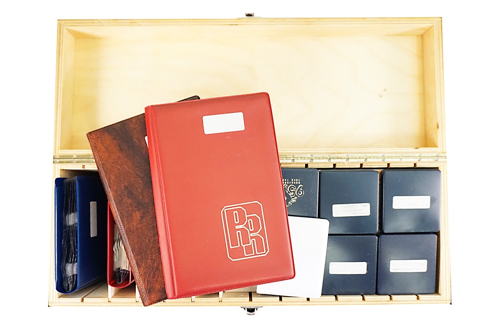 Kist met ondermeer 5 RR pocketalbums met leuke moderne penningverzameling, alsmede veel losse stukken in zilver en zelfs goud!! Moet gezien worden!