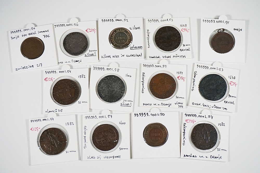 Nagekomen inzending met 13 stuks rekenpenningen allen met betrekking tot de 80-jarige oorlog.(1568-1648). Leuk!