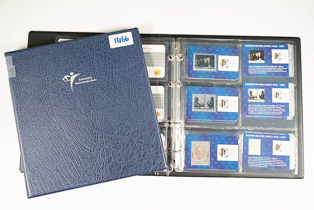 Twee blauwe albumpjes “De Zilveren Kinderzegels in Kleur” & De Zilveren Beatrixzegels in Kleur”. Totaal 50 stuks. Uitgifteprijs KNM: € 834,50.