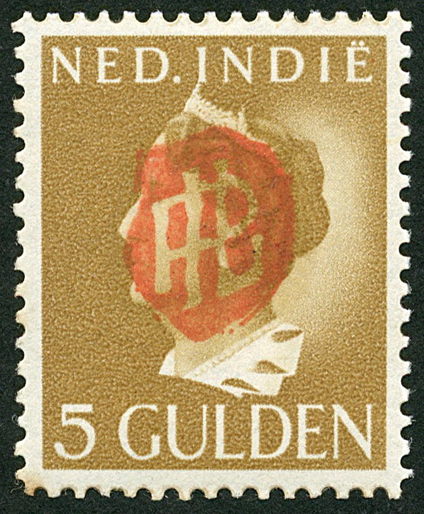 5 Gulden van Konijnenburg with signet ring overprint of postmaster Lengkong in red no. 572r-56. ? 325