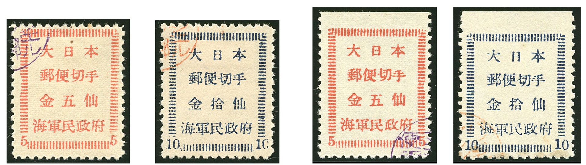Emergency Issue for Bandjermasin 5 and 10 sen nos. 002-003. Fine unused sets with four sides perforated and with upper side imperforated. ? 425