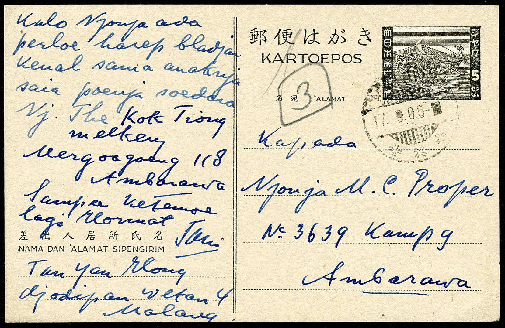 JAVA. 5 Sen postcard Bu.8 from Malang 17.9.0.5 to a woman in Camp 9, Ambarawa. € 150