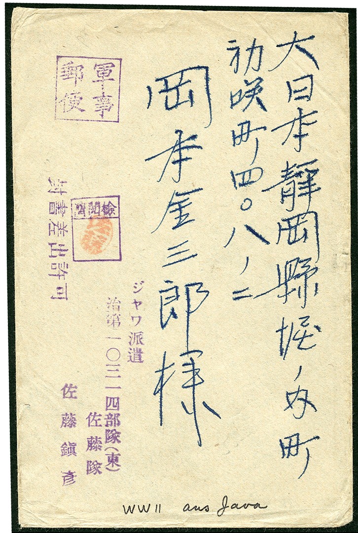 Envelope from a soldier, Osamu 10314, 4th Railway Command unit (attached to the 216th Army) to Japan