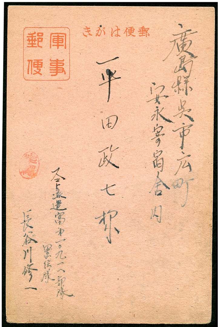 Postcard from a soldier, Gaku 10918, 147th Independent Infantry Battalion (attached to the 26th independent Mixed Brigade) from Malaya to Japan